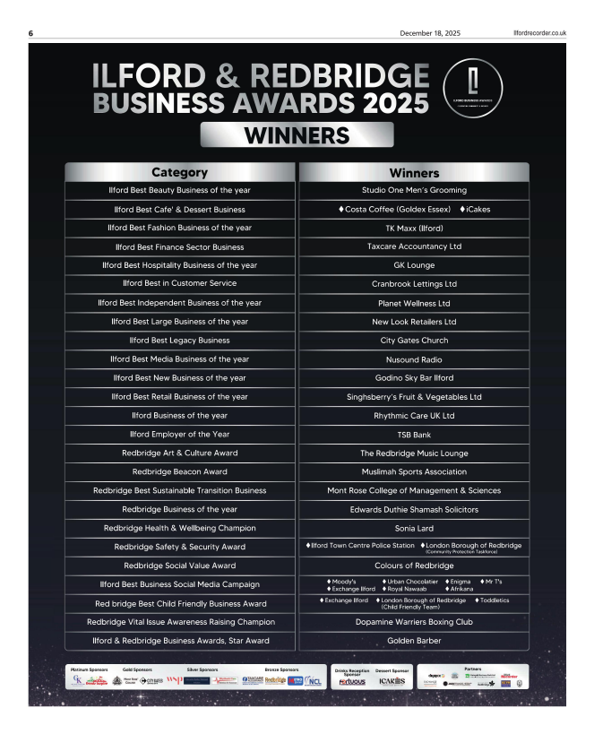 Local businesses took center stage at the 2025 Ilford & Redbridge Business Awards, a gala inspired by Strictly Come Dancing, celebrating the achievements of companies across Ilford and the London Borough of Redbridge.